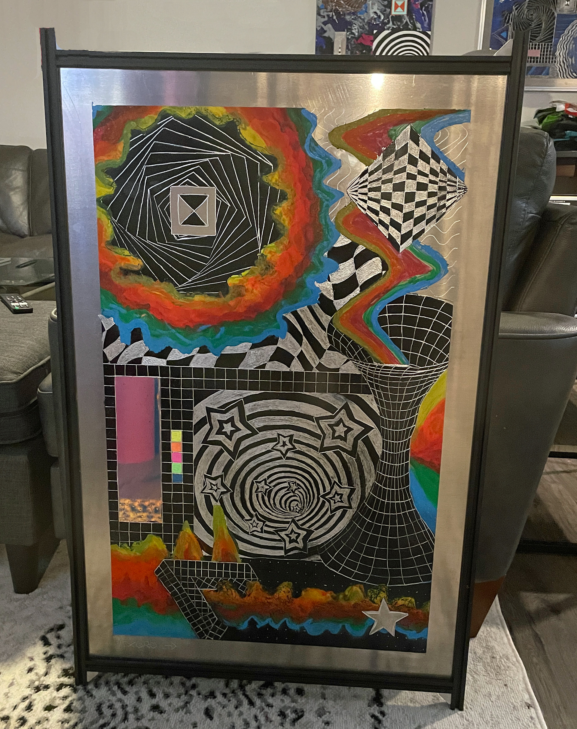 Axuro LTD is a collection of fine art by Waldo Harrison. Having no formal training, his abstract style has been shaped over 13 years of experimentation across countless mediums and techniques. From painting, engraving, and metalworking, to electronic tinkering, digital art, and 3D modeling, his work explores the meeting point between creativity and technical skills.