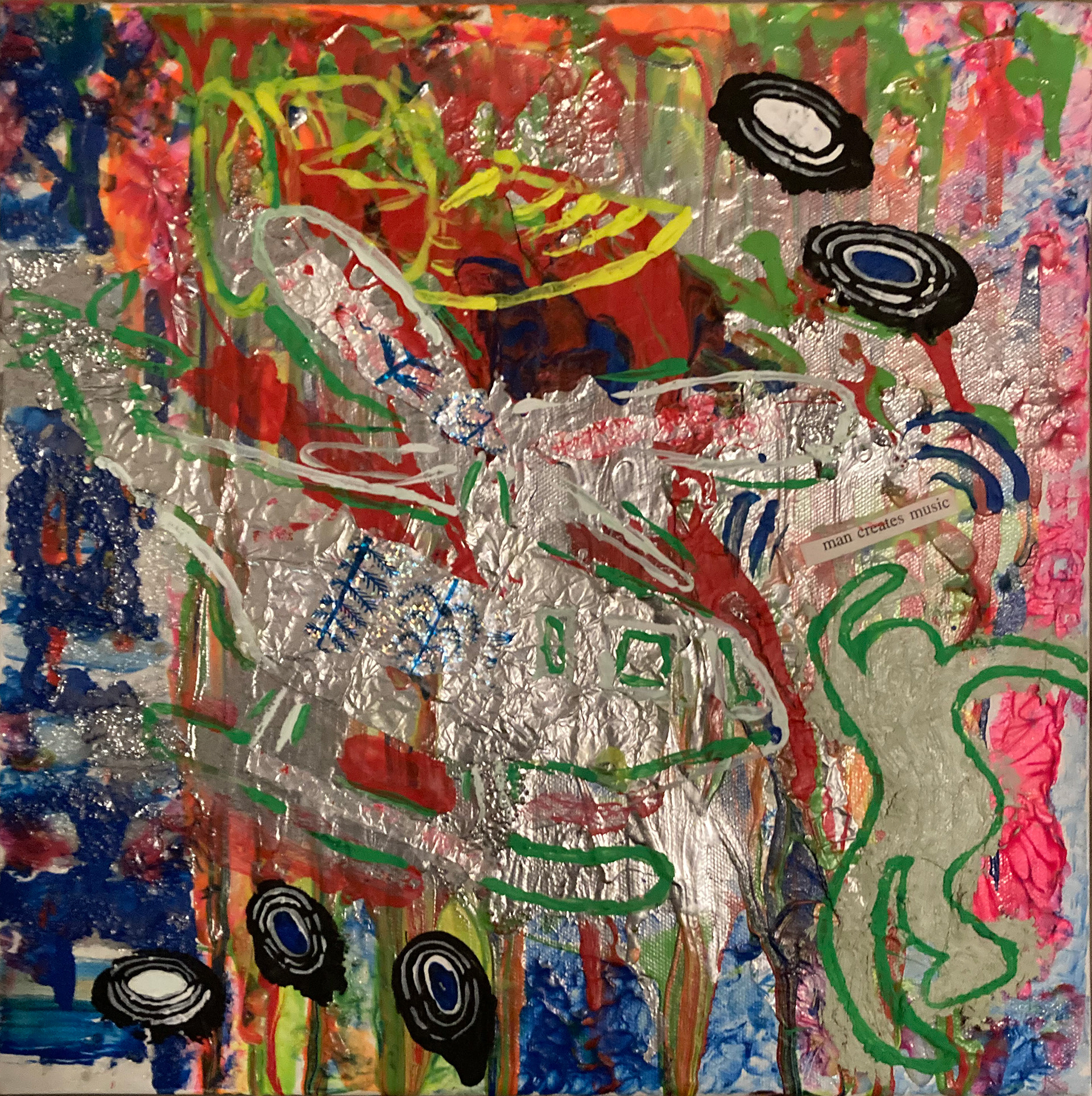 My art works with multiple media to depict the multiple dimensions we inhabit in every moment. It aims to be a raw examination of the realms of our mind typically thought of as 'unreal', and hints that our world of consensus reality may be just as real as the world of dreams & visions.