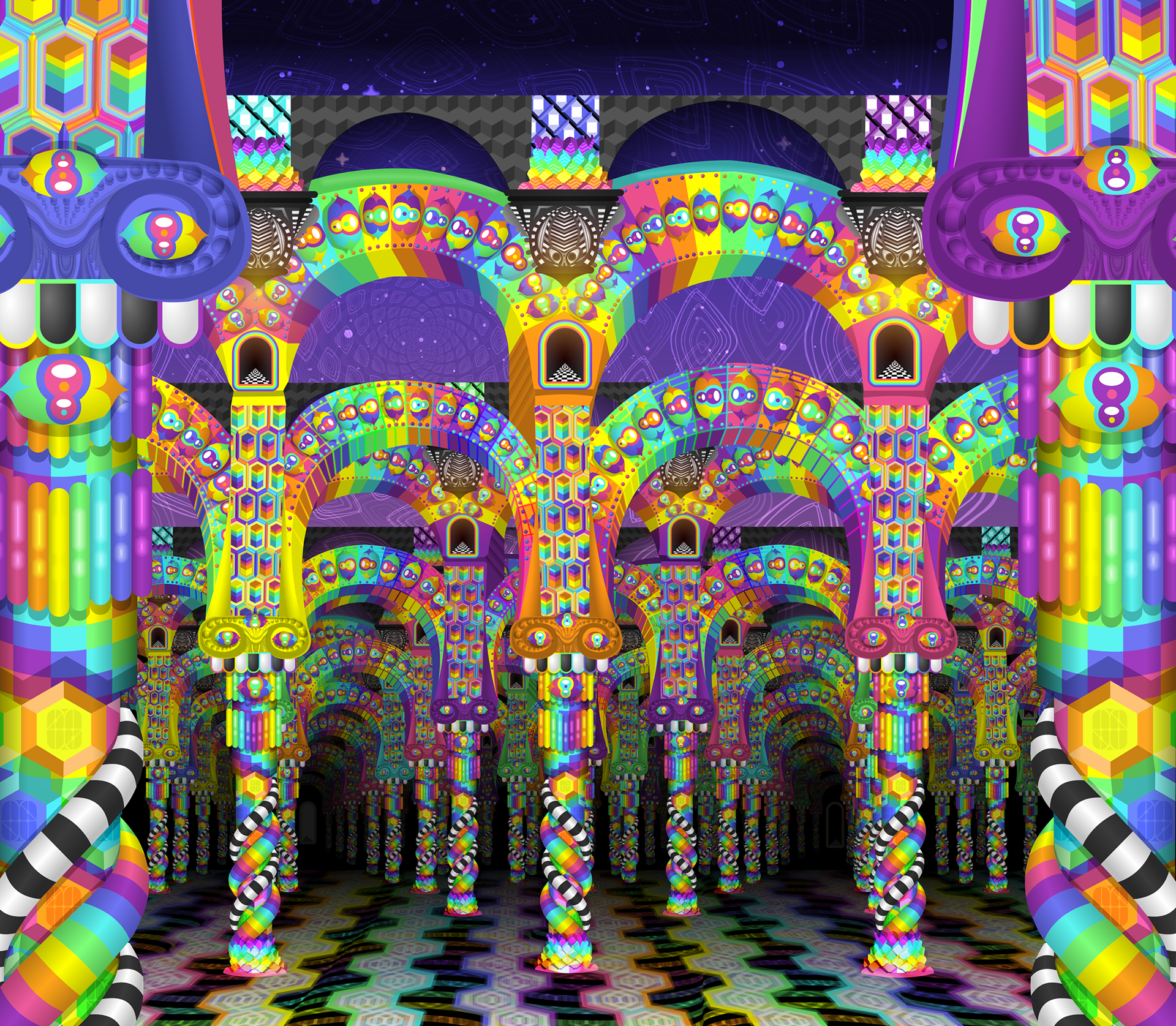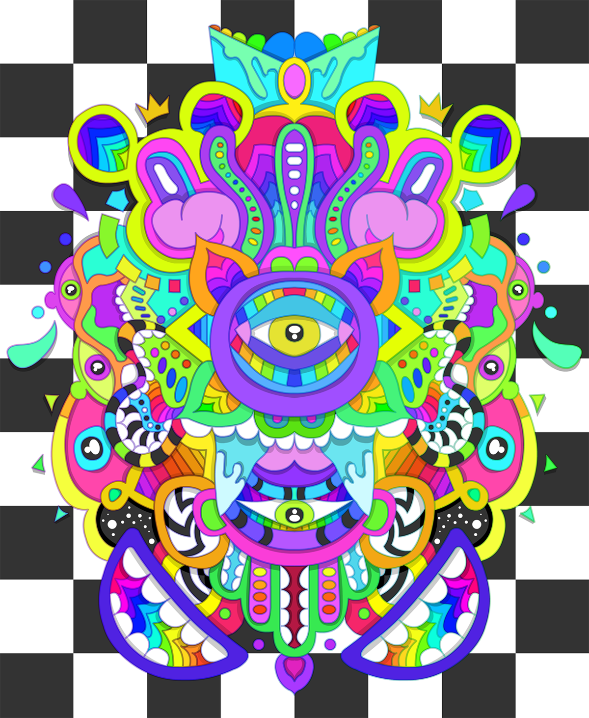 Though I no longer make interactive content, or rarely even animations, I still use Flash to produce my vector content. I stride to express ineffable experiences through pattern and familiarity, and remind us even on a normal day, of the channels that exist within our minds. I've always related to pareidolia, and put as many "faces in places" as I can in a lot of my works.
