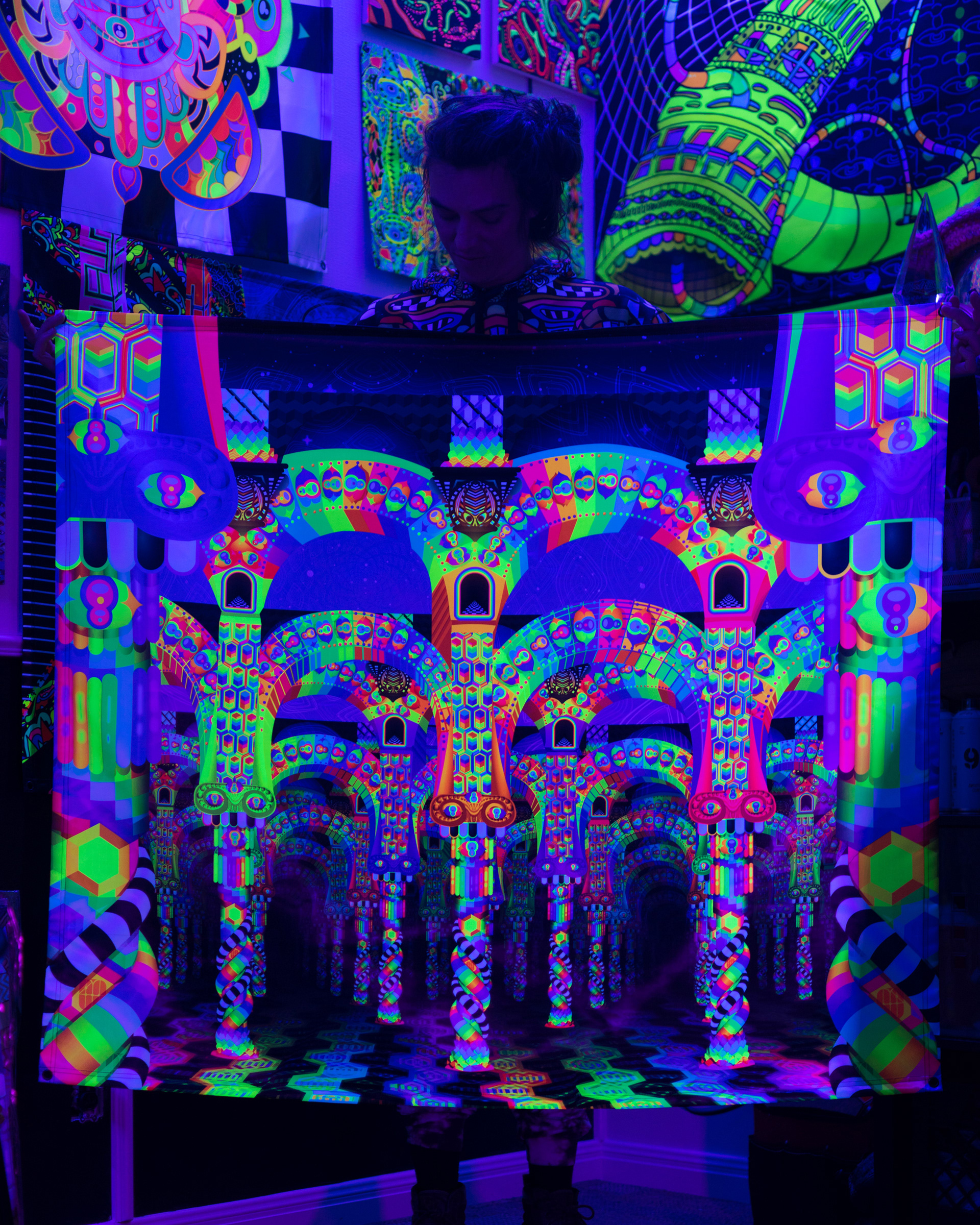 I currently share a studio space with my artistic girlfriend and fellow ALPACA member, Rami (Electric Lotus Art), and we call it The Cosmic Niche, an immersive blacklight experience! Hit us up to come get lost in our space sometime.