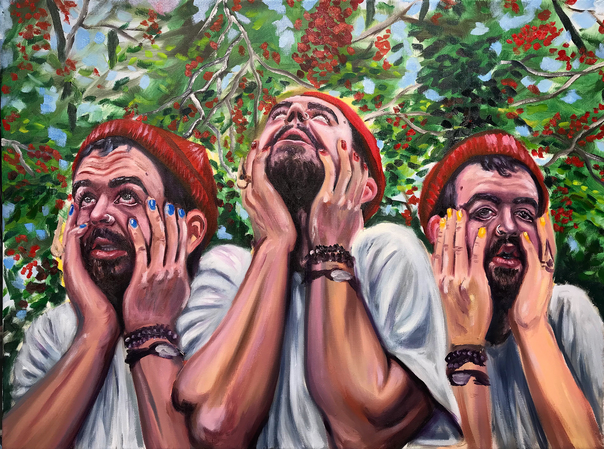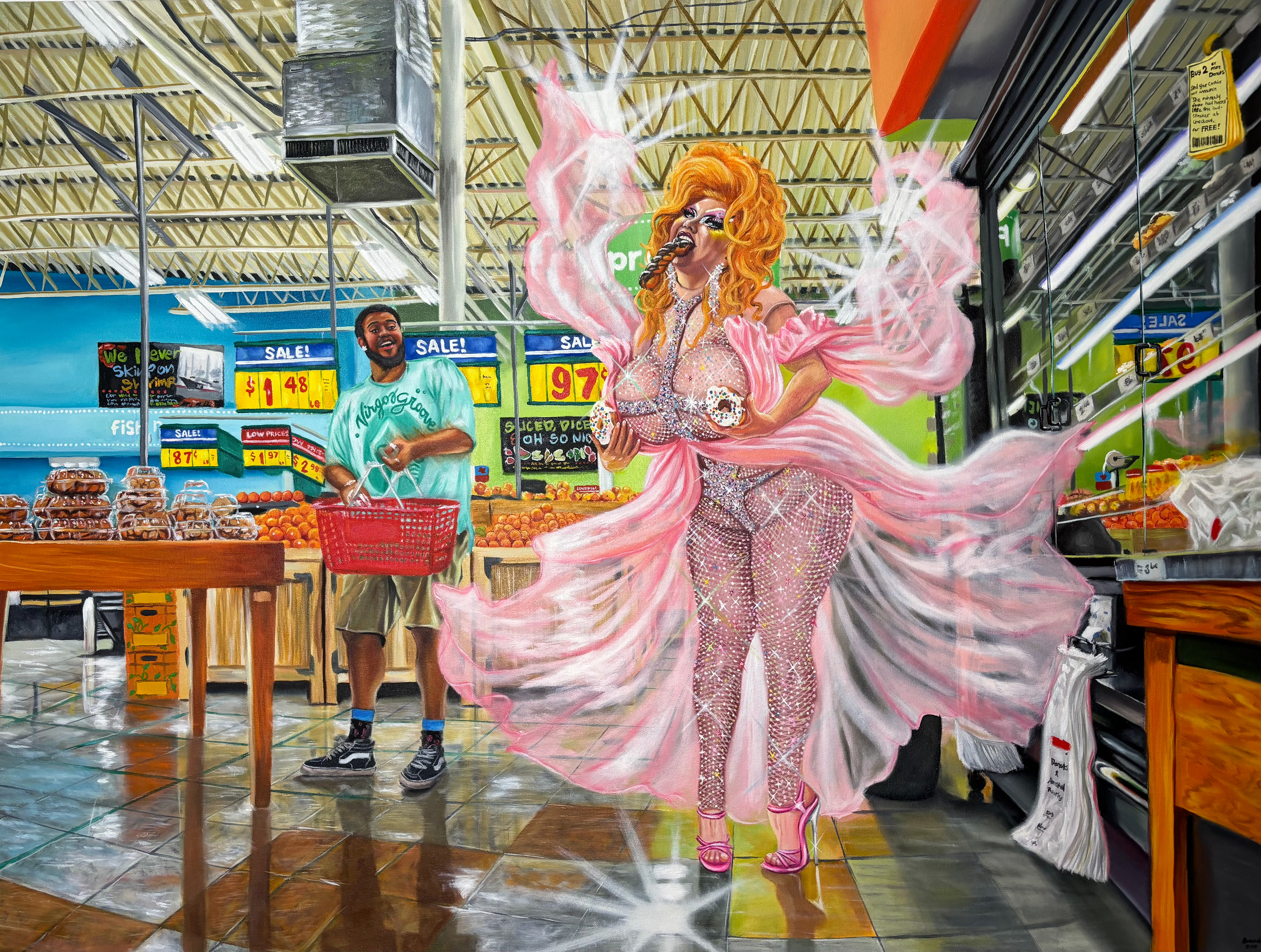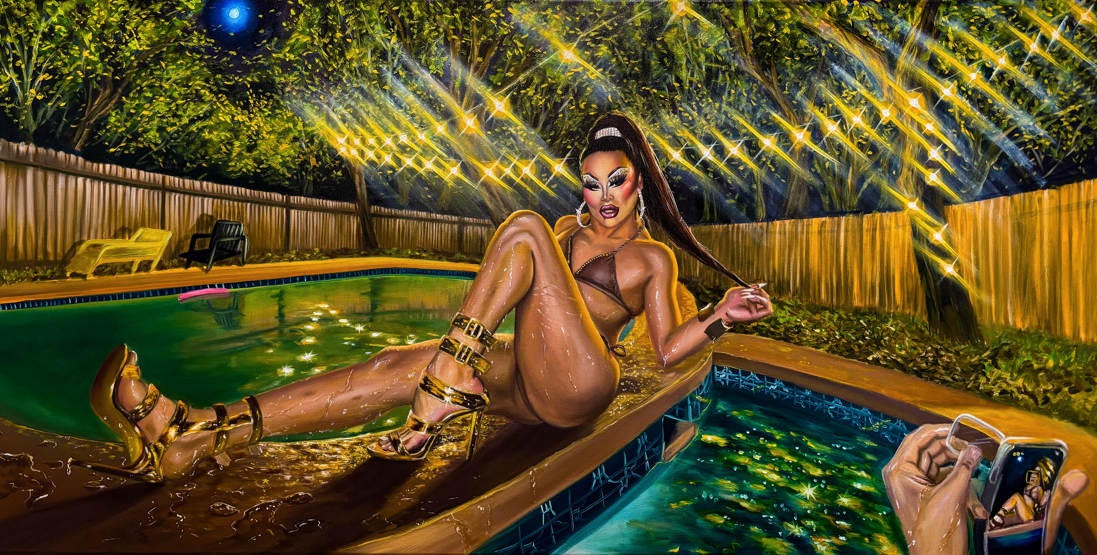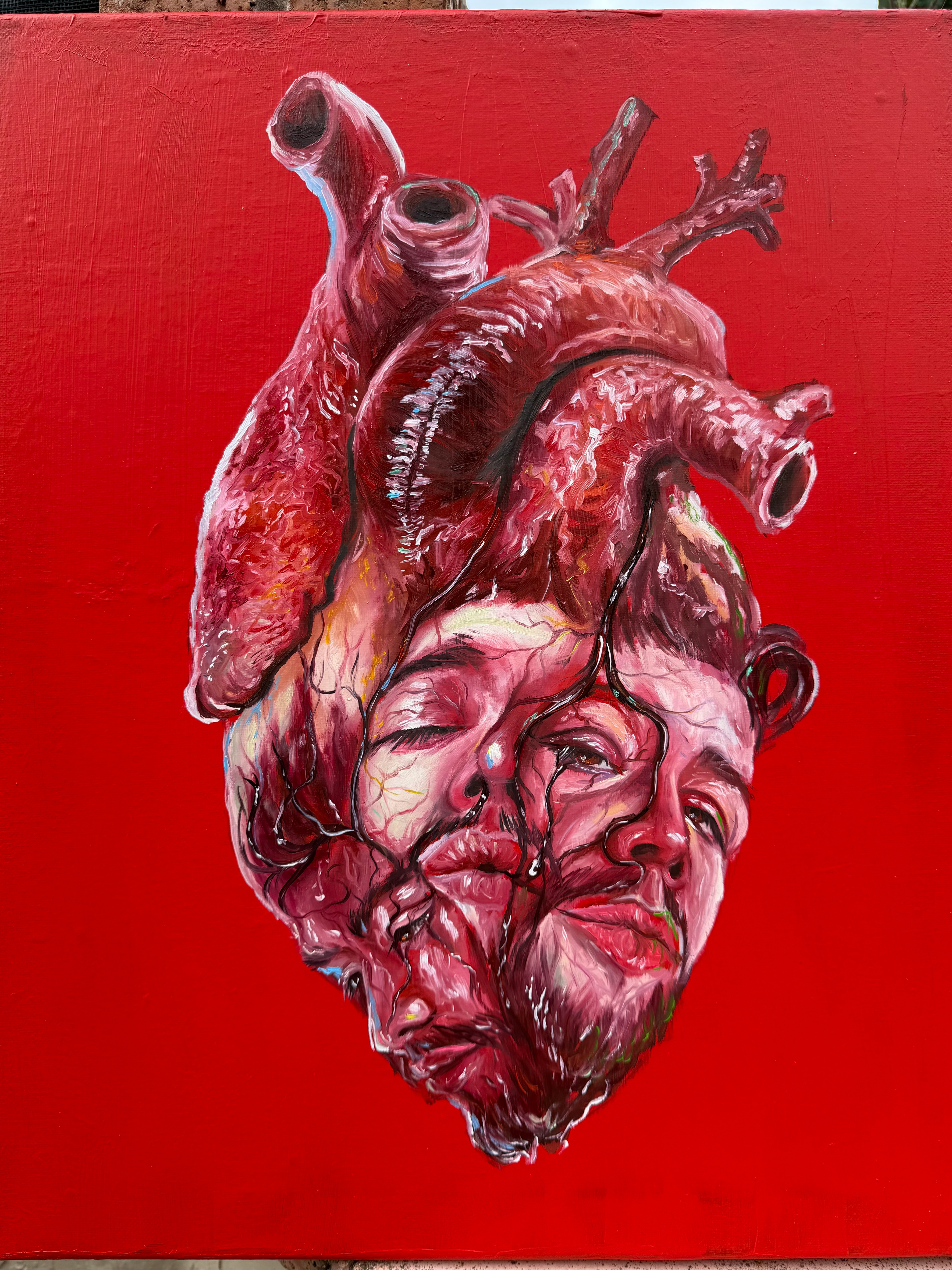 With my paintings, I like to evoke the feeling of being awestruck by an eye-catching comic book cover or film poster. I revere the surrealism of Frida Kahlo and Dalí, the brushstrokes of Van Gogh and Sergeant, and the intensity through the masterpieces by Caravaggio and Gabrielle Dell’Otto.