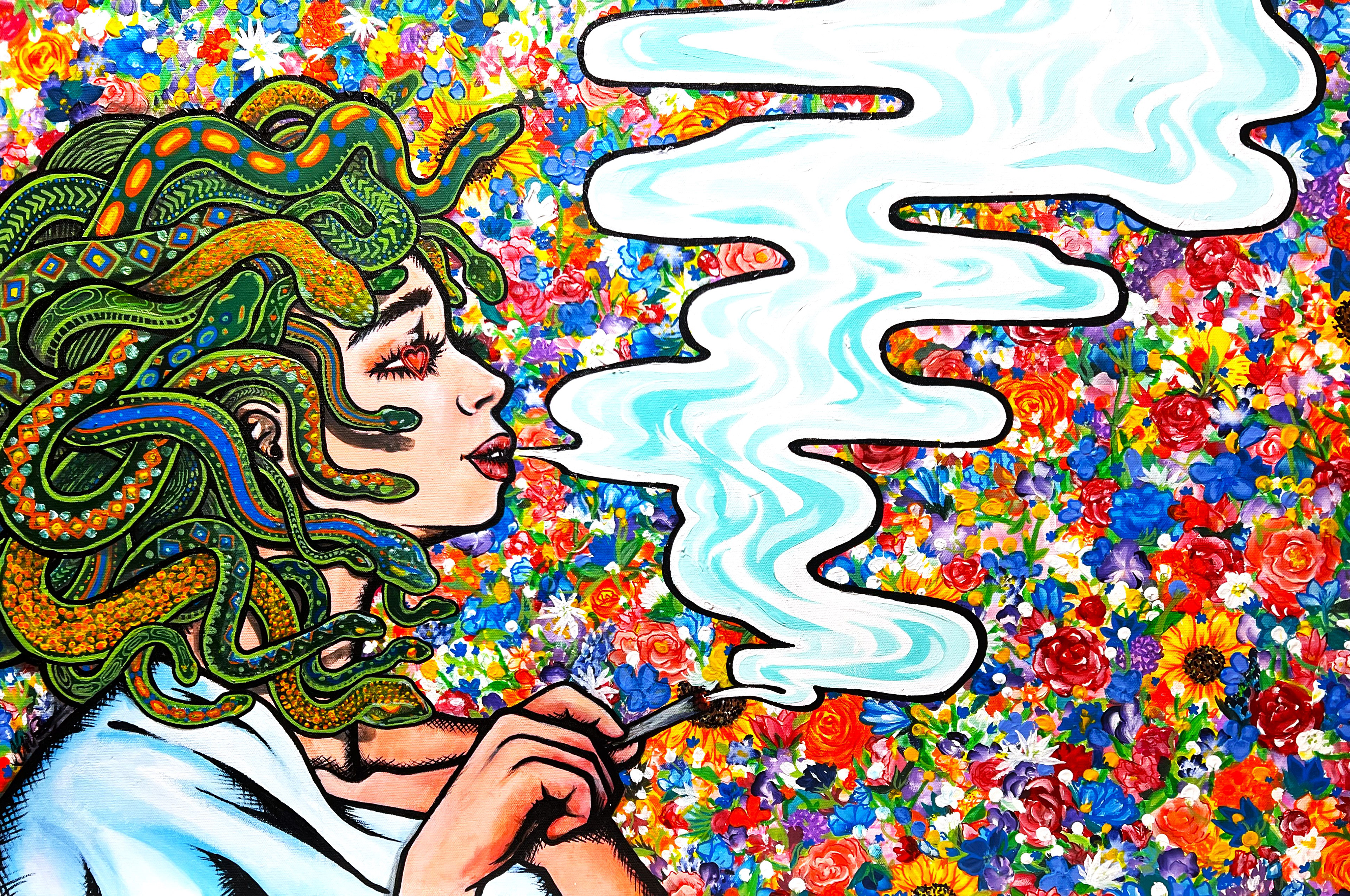 Her work is a colorful exploration of emotions, aiming to capture the beauty and complexity of the human experience. These unapologetically vibrant pieces invite viewers to engage with their own emotions and reflect on the stories that shape their lives.